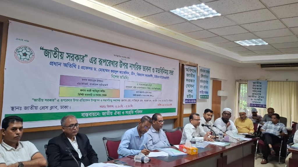 ডক্টর ইউনুসের নেতৃত্বে জাতীয় সরকারের দাবি করেছে জাতীয় ঐক্য ও সংহতি পরিষদ। আজ ২৫ মে ২০২৫ রবিবার বিকেল তিন ঘটিকায় জাতীয় প্রেসক্লাবের মানিক মিয়া হলে জাতীয় ঐক্য সংহতি পরিষদ বাংলাদেশের কাঙ্খিত আগামী জাতীয় সরকারের রূপরেখার উপর নাগরিক ভাবনা বিষয়ক মতবিনিময় সভায় জাতীয় সরকারের পূর্ণাঙ্গ রূপরেখার প্রণয়ন ও বাস্তবায়নের জাতীয় ঐক্য সংহতি পরিষদের আহ্বায়ক মোঃ নাজিমুল […]